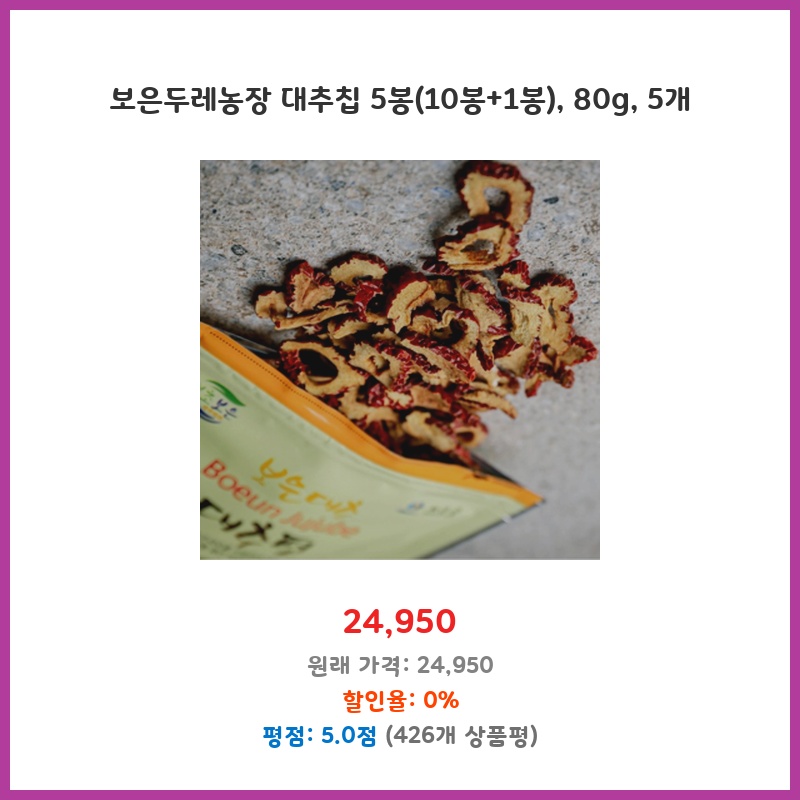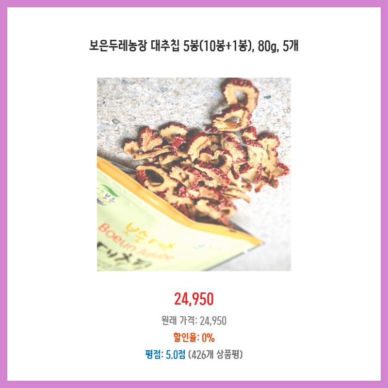 보은두레농장 대추칩 5봉(10봉+1봉), 80g, 5개
