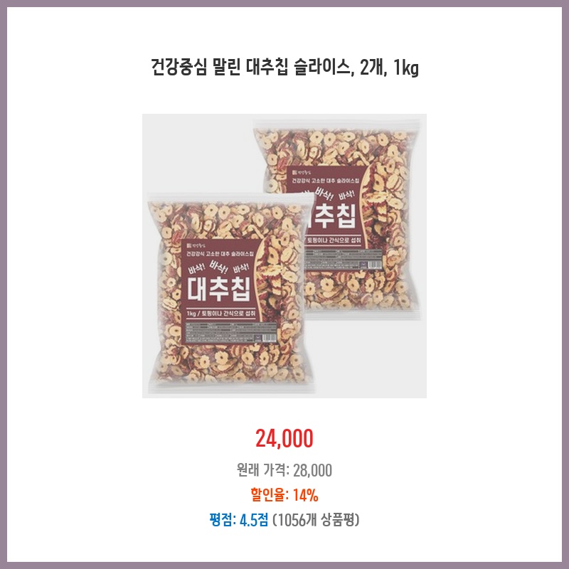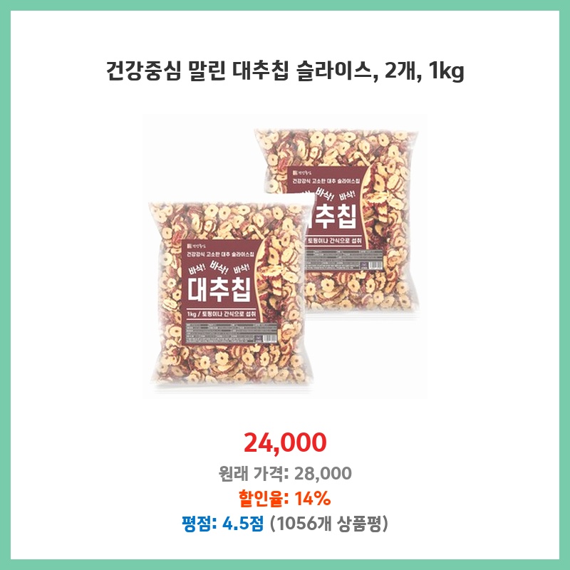 건강중심 말린 대추칩 슬라이스, 2개, 1kg